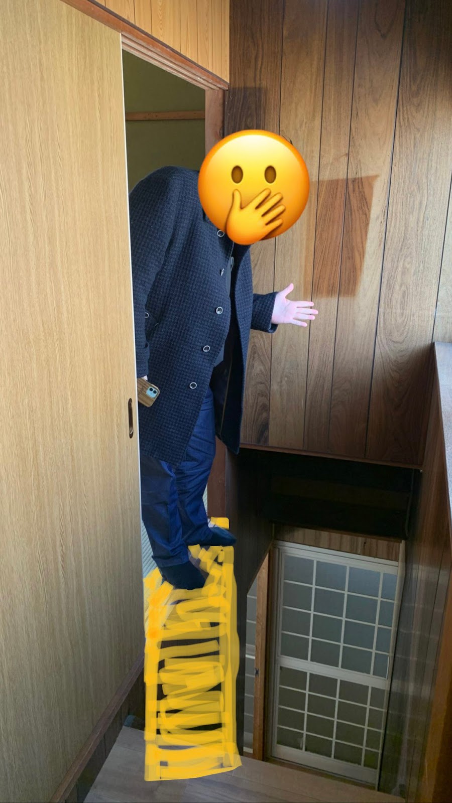 "哇靠跟大叔幽靈無關 ! 注意到那走廊玻璃門讓人滿腦子覺得樓梯好陡。"タンスとかあげる時にそこ解放しないと入れれないんすよね